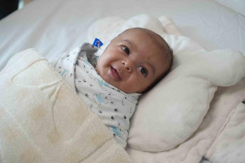 Talha bebeğin, agresif tümörden dolayı zorlu bir ameliyat geçirdiğini söyleyen ve ameliyatı gerçekleştiren ekibin başarılı bir şekilde bu süreci tamamladığını aktaran Gaziantep Şehir Hastanesi Başhekimi Ilgın Türkçüoğlu, "Hastamız Talha bebek, bizim hastanemizde doğmuştu. Doğduğunda, arkadaşlarımız kafatasının üzerinde cilt altında bir kitle olduğunu tespit ettiler ve bunun takibini yaptılar. Hemen doğar doğmaz ameliyat etmediler çünkü kilosu itibariyle çok küçük olması nedeniyle ameliyat sürecini kaldıramayacağı öngörüldüğünden bir takibe alındı. Tabii bu takip sürecinde kitlenin hızlı büyümesi, kafatası kemiğini invaze etmesi yani oraya da uzanması ve beyin dokusunu da itmeye başlaması, damarlanmasının da çok fazla olması nedeniyle artık bu kitlenin çıkarılması gerektiği kararı alındı. Damarlanması fazla olduğundan ameliyat sırasında küçük bir bebek fazla kan kaybı olmasın diye öncelikle girişimsel radyolojide embolizasyon işlemi yapıldı. Yani girişimsel radyolojinin yaptığı, damarların tıkanması ve kitlenin beslenmesinin engellenmesine dair bir işlemdir. Arkasından da beyin cerrahisi ve plastik cerrahi, ameliyatını başarılı bir şekilde tamamladı. Beynin küçük olması nedeniyle kitlenin invaziv olması, hızlı büyümesi, agresif bir tümör olması nedeniyle zorlu bir ameliyattı. Ekibimiz başarılı bir şekilde bu süreci tamamladı. Tabii burada arka planda çalışan anestezi, yoğun bakım hekimlerimiz bu sürecin sağlıklı bir şekilde yapılabilmesi konusunda bizlere destek verdiler. Ben hastanemizde böyle bir multidisipliner çalışmanın başarılı bir şekilde tamamlanmış olmasından dolayı hekimlerimizi çok tebrik ediyorum" diye konuştu.