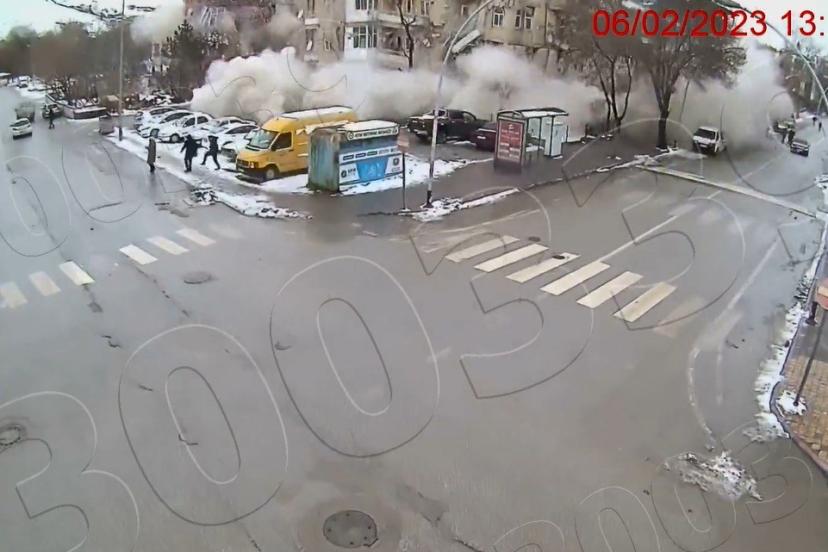 Görüntülere, bazı binaların büyük bir gürültüyle çöktüğü, çöken yapıların çevresinde yoğun toz bulutunun oluştuğu ve yollara beton parçalarının savrulduğu yansıdı. Depremin etkisiyle çevrede bulunan iş yerlerinin camlarının kırıldığı, tabelaların sallandığı ve çevrede kısa sürede büyük bir kargaşa yaşandığı da kaydedildi.