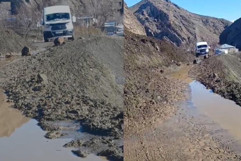 Hakkari’nin Kamışlı ile Geçitli köylerini birbirine bağlayan yolda heyelan meydana geldi.