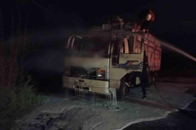 Hatay’da park halindeyken alevlere teslim olan kamyonda hasar oluştu.