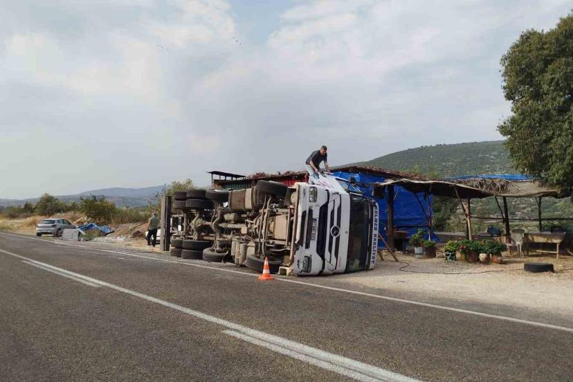 Kamyon devrildi, sürücü yara almadan kurtuldu