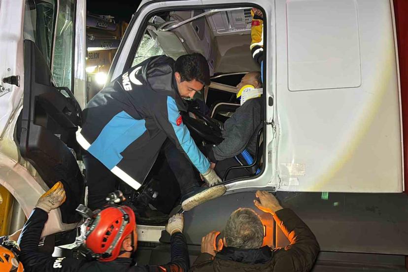 Kamyon tıra çarptı, sürücü kabinde sıkıştı: Ekipler zamanla yarıştı