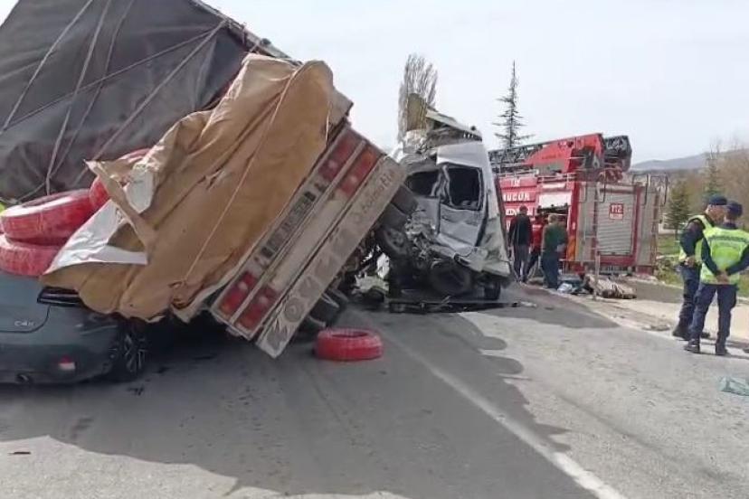 Edinilen bilgiye göre, ilçe girişinde dün meydana gelen kazada freni boşaldığı iddia edilen 20 AKP 573 plakalı kamyonet, önce kırmızı ışıkta bekleyen ve plakası öğrenilemeyen bir minibüse çarptı. Çarpmanın şiddetiyle kontrolden çıkan kamyonet, yanında bulunan 07 CHY 870 plakalı otomobilin üzerine devrildi. Kazada 1’i ağır 5 kişi yaralanırken, ihbar üzerine olay yerine sağlık, itfaiye, AFAD ve emniyet ekipleri sevk edildi. Yaralanan 5 kişi, ambulanslarla hastanelere kaldırıldı. 1’i ağır 5 kişinin yaralandığı kazanın güvenlik kamerasına yansıyan görüntüleri ortaya çıktı. Görüntülerde freni patlayan kamyonetin minibüse çarptıktan sonra otomobilin üzerine devrildiği ve otomobilden çıkan 2 kişinin büyük panik yaşadığı görüldü.