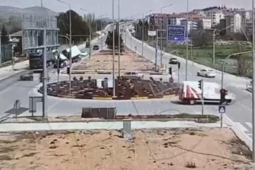 Kırşehir’in Mucur ilçesinde kamyonetin kırmızı ışıkta bekleyen otomobilin üzerine devrilmesi sonucu 1’i ağır 5 kişinin yaralandığı kazada yaşanan panik güvenlik kamerasına yansıdı.