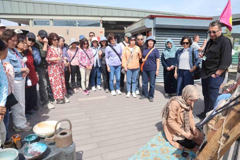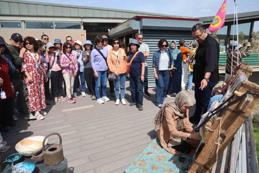 Kapadokya’da turistler halı dokuyup çanak yaptı