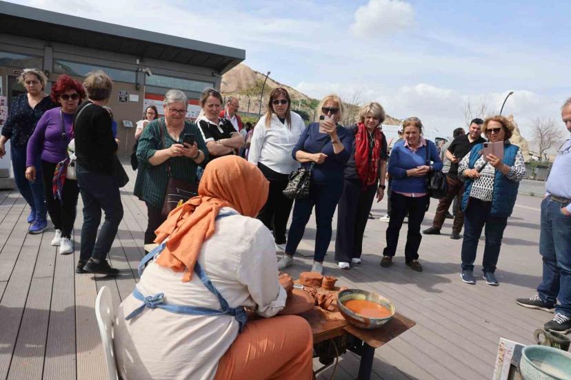 Her yıl yaklaşık 5 milyon yerli ve yabancı turisti ağırlayan Kapadokya’da Nevşehir Müze Müdürlüğü tarafından açılan stantta turistler, halı dokuma ve çanak-çömlek yapımı hakkında önce bilgi aldı. Daha sonra usta eğitmenler eşliğinde tezgâh başına geçen ziyaretçiler, ilmek atarak halı dokumanın inceliklerini öğrenirken, çamura şekil vererek çanak yapımını da deneyimledi. Etkinlikte ilk ilmeği ise Nevşehir Müze Müdürü Gökhan Maskar attı. Özellikle yabancı turistlerin yoğun ilgi gösterdiği etkinlikte renkli görüntüler oluştu.