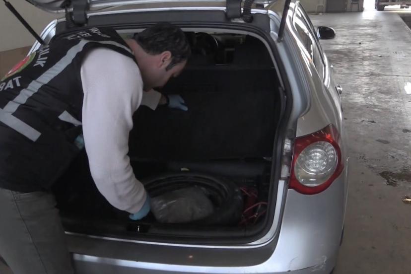 Narkotik Dedektör Köpekleri "Füge" ve "Bodri"nin katılımıyla yapılan aramada, köpeklerin koltuk altları ve motor bölümüne tepki vermesi üzerine araçta özel olarak hazırlanmış gizli bölmeler tespit edildi. Yapılan kontrollerde, özel tertibatlı düzenek içerisinde 68 adet şeffaf vakumlu poşet içinde toplam 22 kilo 662 gram esrar ele geçirildi.
