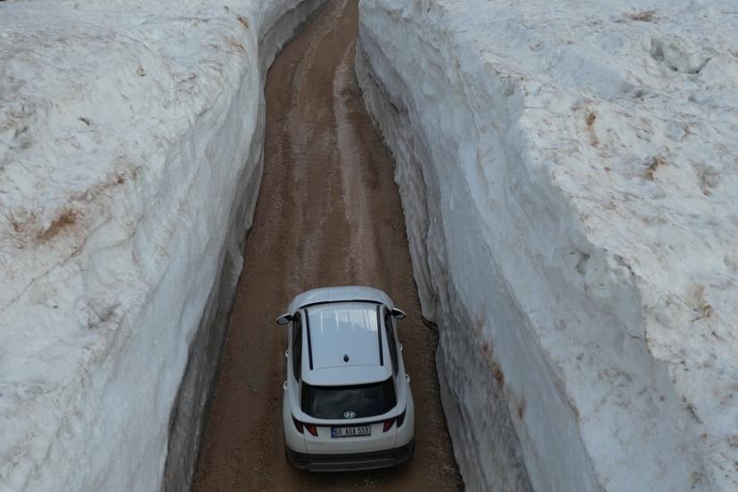 Kar duvarları arasında kalan yol görenleri hayrete düşürdü
