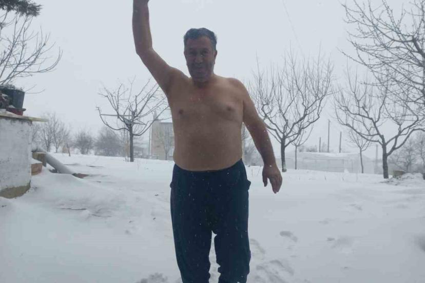 Olay, merkeze bağlı Beyyurdu Mahallesi’nde yaşandı. Edinilen bilgiye göre, mahalle sakinlerinden İlhami Çelik, sabah saatlerinde başlayan ve kent genelinde halen etkisini sürdüren kar yağışını üstsüz sokağa çıkarak kutladı. Vücudunun bazı kısımlarını yağan karla ıslatan vatandaş, o anları da cep telefonu kamerası ile kayda aldırdı.