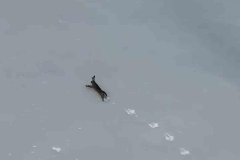 Kar üzerinde koşan yaban tavşanı görüntülendi
