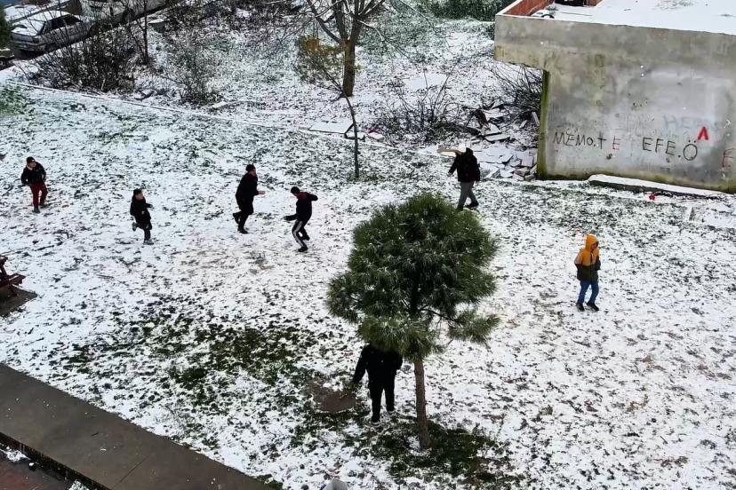 Meteoroloji ve AKOM’un uyarılarının ardından İstanbul’da yeni yılın ilk saatlerinden itibaren bir çok noktada kar yağışı etkili oluyor. Arnavutköy’de de öğle saatlerinde etkili olan kar yağışı kısa sürede etrafı beyaza bürüdü. Everin çatıları, araçların üzerleri ve sokak araları beyaz örtüyle kaplanırken kar yağışını görenler kendisini dışarıya attı. Yunus Emre Mahallesi’nde bulunan boş arazide çocuklar ve aileleri futbol müsabakası düzenledi. Doyasıya eğlenilen o anlar ve kar yağışı dron kamerasıyla havadan görüntülendi.