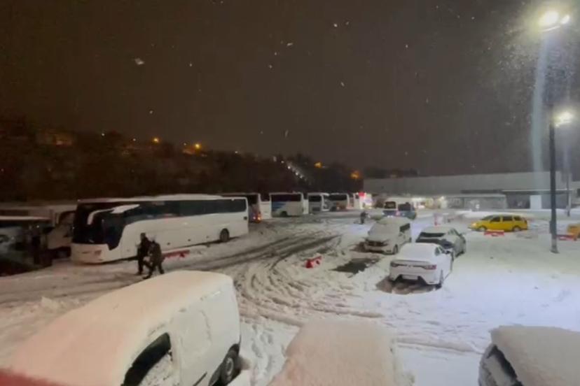 Kar yağışı ve kazalar nedeniyle trafik kapatıldı yolcular otobüslerde sabahladı