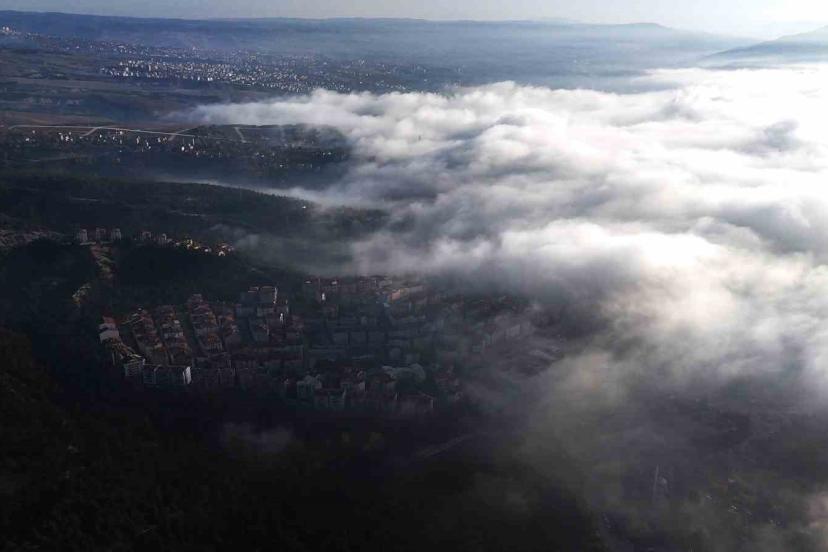 Karabük’te sabah saatlerinde etkili olan ve kentin üzerini adeta beyaz bir örtü gibi saran sis, havadan görüntülendi.