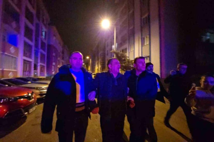 Polis ekipleri, çelik yelek giyerek çevrede güvenlik önlemi aldı. Yapılan çağrılar üzerine Murat K., tüfekteki fişekleri apartman bahçesine atarak teslim olacağını bildirdi. Şüpheli, Asayiş Şube Müdürlüğü ekiplerince suç aletiyle birlikte gözaltına alındı. Apartman çıkışında polis eşliğinde ekip aracına bindirilen Murat K’in, "Polislere ateş etmedim. Kapıma geldi dayandı. Polisi aradım, gelmeyince ben de vurdum" şeklindeki sözleri dikkat çekti.