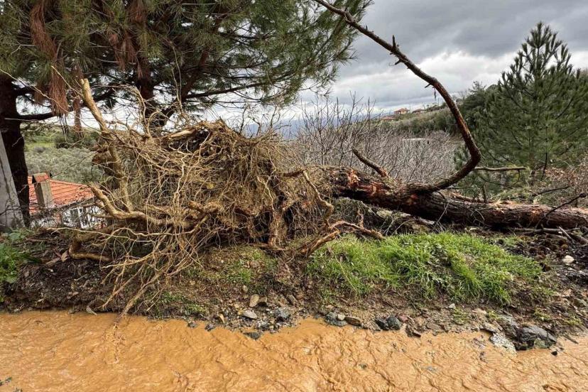 Karacasu’da aşırı yağışlar sonrası toprak kaydı, ağaçlar devrildi