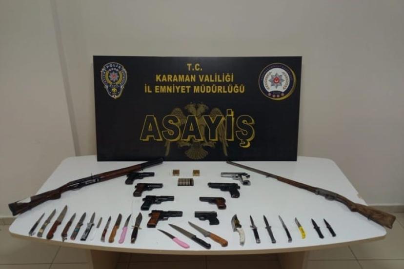 Karaman’da asayiş uygulamalarında uyuşturucu ve ruhsatsız silahlar ele geçirilirken, aranan 11 şahıs tutuklandı.