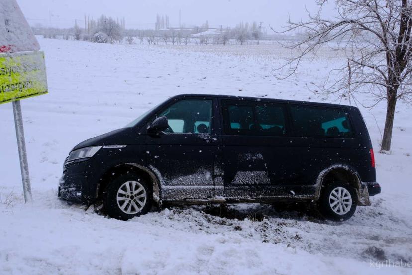 Karaman’da karla kaplı yolda sürücüsünün direksiyon hakimiyetini kaybettiği minibüs şarampole indi. Kazada yaralanan olmadı.