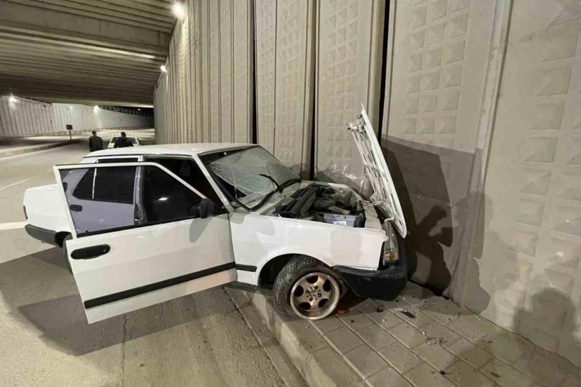 Karaman’da kontrolden çıkan otomobil alt geçidin duvarına çarptı