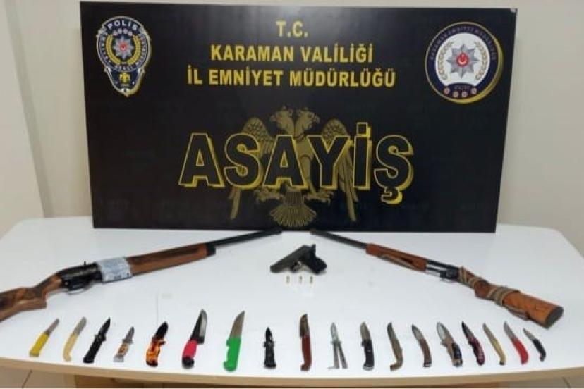 Karaman’da polis uygulamasında silahlar ve bıçaklar ele geçirildi: 5 tutuklama