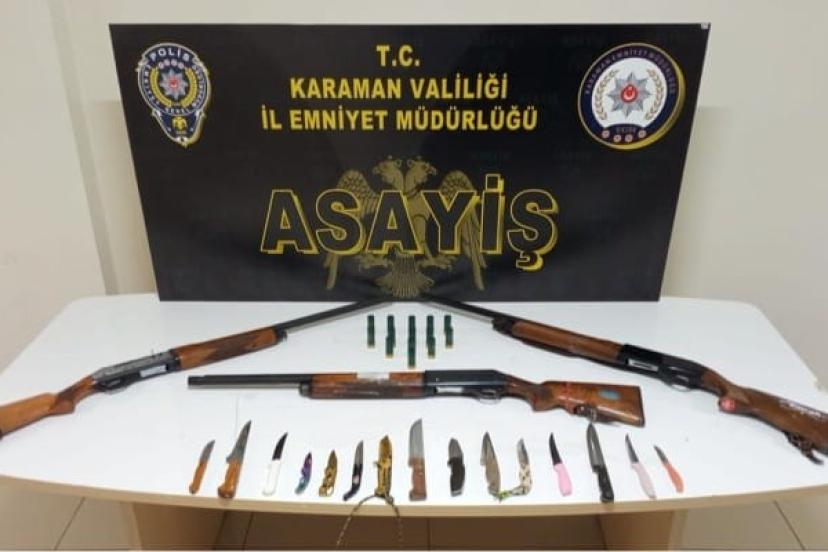 Karaman’da polisin yürüttüğü uygulamalarda ruhsatsız av tüfekleri ile kaçak tütün ele geçirilirken, aranan 5 şahıs tutuklandı.