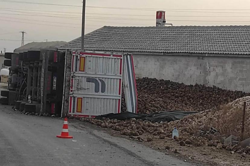 Konya’nın Karapınar ilçesinde pancar yüklü tırın devrilmesi sonucu 1 kişi yaralandı.