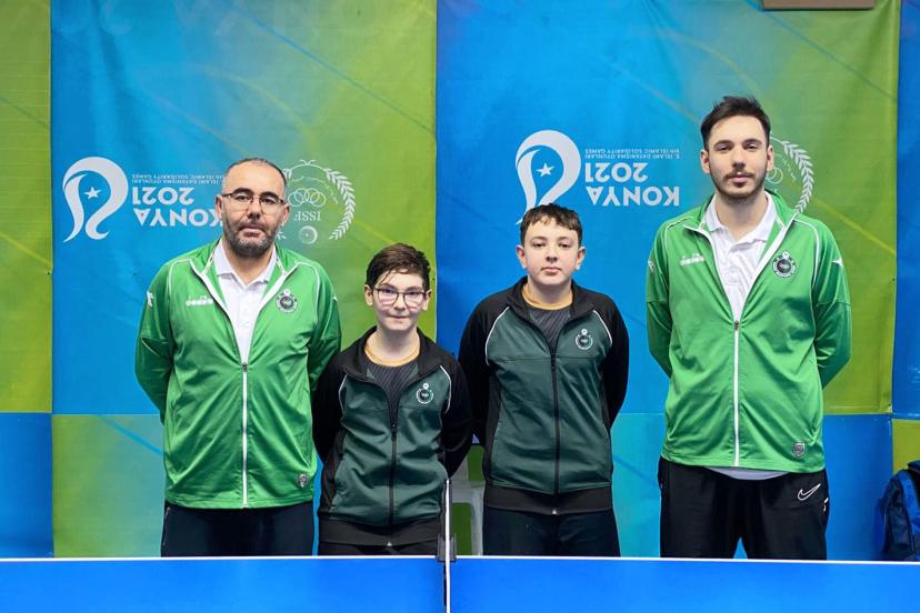 Karatay Belediyespor Kulübü Masa Tenisi Takımı sporcuları Muhammed Said Oğuz ve Tahir Efe Şahin ile Antrenör Muhammed Huzeyfe...