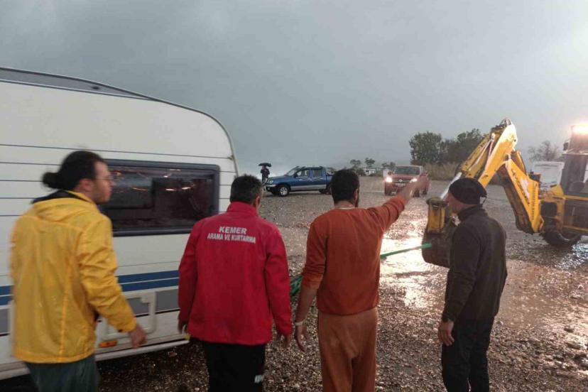 Antalya’nın Kemer ilçesinde şiddetli yağmur sırasında iki karavan denize sürüklendi. Karavanlardan birinde mahsur kalan Rus turistler, Kemer Belediyesi Afet İşleri Müdürlüğü ile KEMKUT ekipleri tarafından kurtarıldı.
