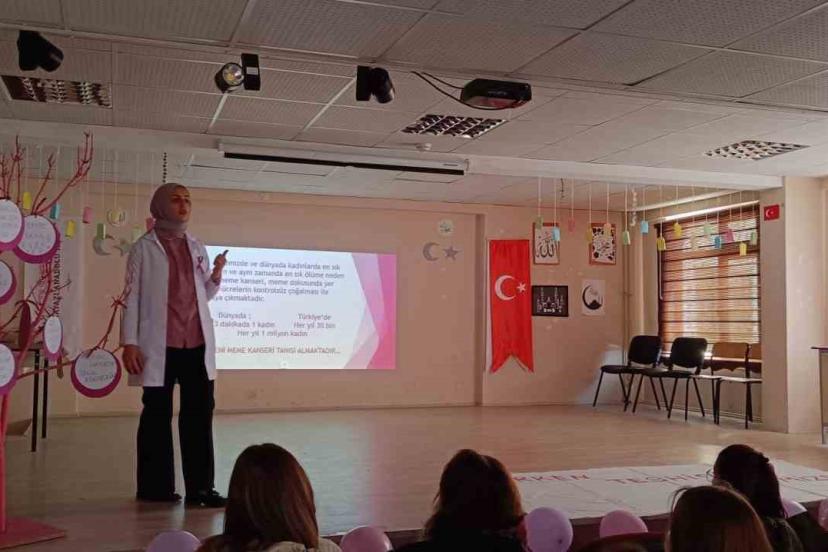 Ekim ayının Meme Kanseri Farkındalık Ayı olması dolayısıyla gerçekleştirilen seminerde, öğrenci ve öğretmenlere meme kanserinde erken teşhisin önemi anlatıldı. Hemşire Sevim Güzel, meme kanserinin kadınlar arasında en sık görülen kanser türlerinden biri olduğunu belirterek, "Erken teşhis, tedavi başarısını önemli ölçüde artırmaktadır. Bu nedenle düzenli muayene ve kontroller büyük önem taşır." ifadelerini kullandı.