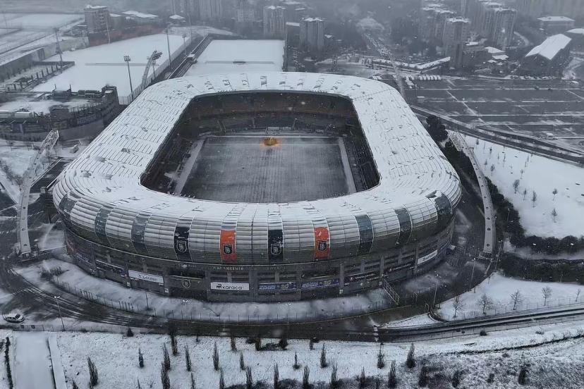 İstanbul’un Başakşehir ilçesinde kar yağışı havadan görüntülendi. Kartpostalık görüntüde stadyum, evler ve yerlerin karla kapandığı görüldü.