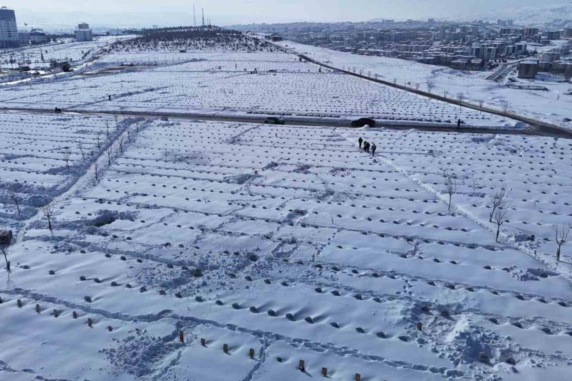 Sivas’ta günlerdir aralıklarla etkisini sürdüren yoğun kar yağışı hayatı olumsuz etkilemeye devam ediyor. Kent genelinde birçok nokta beyaz örtüyle kaplanırken, şehrin en büyük mezarlıklarından biri olan Yukarı Tekke Mezarlığı da kar altında kaldı. Yaklaşık 100 bin mezarın bulunduğu mezarlık alanı tamamen beyaza bürünürken, mezar taşları da kara gömüldü. Bazı vatandaşlar mezar taşları karlı örtüldüğü için yakınlarının mezarlarını bulmakta zorlandı.
