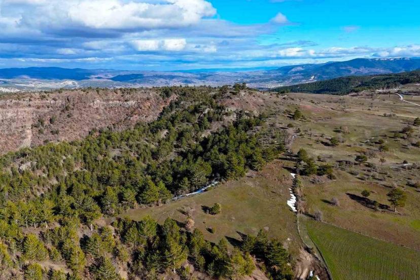 Kastamonu’nun İhsangazi ilçesinde karların erimesiyle birlikte yeşil örtüyle kaplanmaya başlayan yaylalar havadan görüntülendi.
