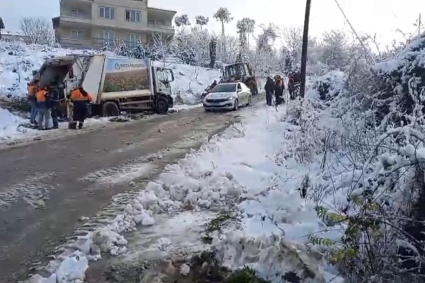 Bartın’da yoğun kar yağışı ve buzlanmaya karşı yapılan uyarıların sürdüğü sabah saatlerinde, Ağdacı Mahallesi’nde belediyeye ait çöp kamyonu kontrolden çıkarak geriye doğru kaydı. Kamyonun arkasındaki belediye işçisi, kayarak toprak zemine çarpan araç ile toprak zemin arasında sıkıştı.