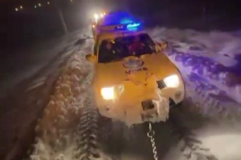 Adıyaman’da, kapanan köy yollarında hastalara ulaşmaya çalışırken mahsur kalan ekiplerin yardımına köylüler yetişti.