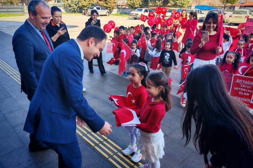 Karpuzlu Anaokulu öğrenci ve öğretmenleri, Türk bayrağına duydukları saygı ve sevgiyi ifade etmek amacıyla Hükümet Konağı’nı ziyaret etti. Ziyarette öğrenciler, hazırladıkları bayrak temalı sloganlar ve dövizlerle bayrağın önemine dikkat çekti. Program kapsamında minikler, Karpuzlu Kaymakamı Mustafa Bayram ile İlçe Milli Eğitim Müdürü Cemal Ağırol’a bayrak tesliminde bulundu. Karpuzlu Kaymakamlığı tarafından paylaşılan etkinlikte, öğrencilerin bayrak sevgisini yansıtan görüntüler de büyük beğeni topladı.