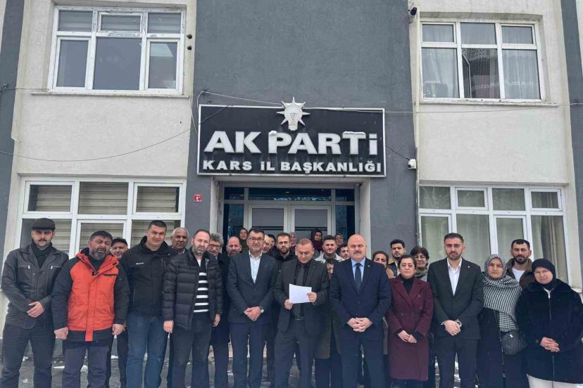 Kars AK Parti İl Başkanlığı önünde bir araya gelen partililer, 28 Şubat Darbesinin 29.
