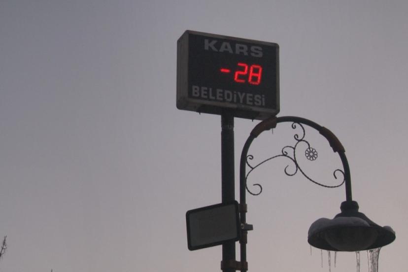 Doğu Anadolu Bölgesi’nde dondurucu kış etkisini artırarak sürdürüyor. Serhat şehri Kars, yılın en soğuk gecelerinden birini yaşadı. Şehir merkezinde termometreler sıfırın altında 28 dereceyi gösterirken, dondurucu soğuk hayatı adeta durma noktasına getirdi.