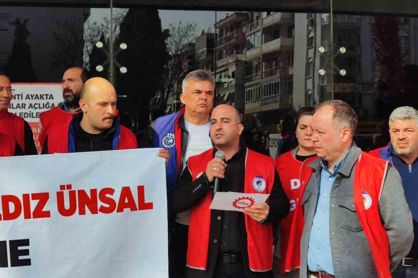 Karşıyaka Belediyesi bünyesindeki Kent A.Ş.’de görev yapan işçiler, ödenmeyen ücretleri ve çalışma şartlarındaki belirsizlikler nedeniyle protestolarını sürdürüyor. DİSK Genel-İş 10 Nolu Şube öncülüğünde belediyenin ana hizmet binası önünde toplanan işçiler, Belediye Başkanı Yıldız Ünsal ile yapılması planlanan görüşmenin iptal edilmesine tepki göstererek basın açıklaması yaptı.