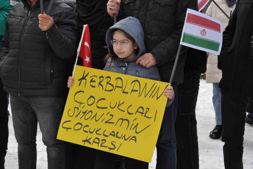 Kars Ehlibeyt Derneği Başkanı Mir Ali Ekber Işık, "Bugün kafirler bir kez daha tüm güçleriyle İslam’ı ve Müslümanları yok etmek için harekete geçmişlerdir. Bu savaş İslam ve küfrün savaşıdır. Neden? Bunu anlayabilmemiz için savaşın taraflarına iyice bakmamız gereklidir. Bir tarafta Allah’a inanan kıble ehli olan anayasası Kur’an olan İran İslam Cumhuriyeti, diğer tarafta yüzlerce yıldır İslam dini geldiği günden beri Müslümanlarla savaşan, İslam’ı baş düşmanı olarak gören Yahudi İsrail ve onun emir eri olan baş şeytan Amerika ve yandaşları vardır. Günümüz dünyasında küfrün ve şirkin temsilcisi olan baş şeytan Amerika demokrasi ve özgürlük götürme hanesiyle gittiği her yeri harabeye çevirmiş ve oraları kendine köle yapmıştır. Irak, Suriye, Afganistan, Yemen, Filistin, Libya, Mısır ve diğer ülkelerin durumları ortadadır. 40 yıldır Filistin’i ve Kudüs’ü işgal altında tutan bu zihniyet, oralarda yaptığı katliam ve zulümleri, yüzlerce yıldır sınırlarımızın değişmediği, en yakın komşumuz İran İslam Cumhuriyeti’ne taşımıştır. Yaklaşık 40 yıldır İran İslam Cumhuriyeti bu vahşi Siyonist saldırgan hayvanı ininde tutmak için uğraşıyordu. Onun için direniş cephesini destekledi. Ama maalesef bu Siyonist yamyamlar, inlerinden çıkarak etraflarına saldırmaya başladılar. Hal böyleyken, siz susun, sesinizi çıkarmayın. Sıra size de gelecek diyerek utanmadan bir de Türkiye Cumhuriyeti gibi köklü bir devlete meydan okumaktadırlar. Böyle bir zamanda biz Müslümanların en temel görevi dinimize ve dindaşlarımıza yapılan bu zulme ve vatanımıza karşı yapılan bu tehdide sessiz kalmamaktır" dedi.