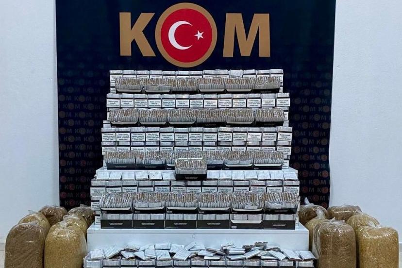 Düzenlenen operasyonda yapılan aramada 80 bin doldurulmuş makaron ve 60 kilo kıyılmış tütün