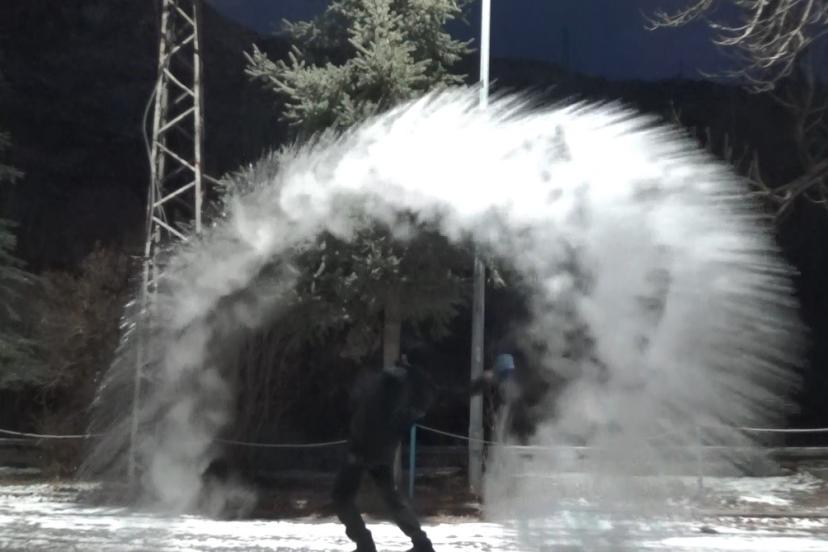 Öte yandan, kentte bir vatandaşın havaya serptiği sıcak su soğuğun etkisiyle dondu. O anlar ise kameraya yansıdı.