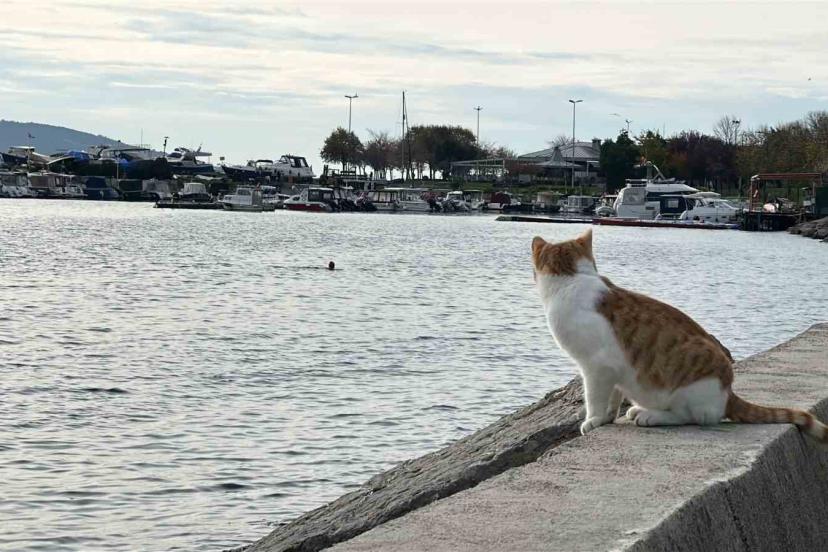 Kartal’da soğuğa meydan okuyan iki arkadaş denize girip yüzmenin keyfi çıkardı.