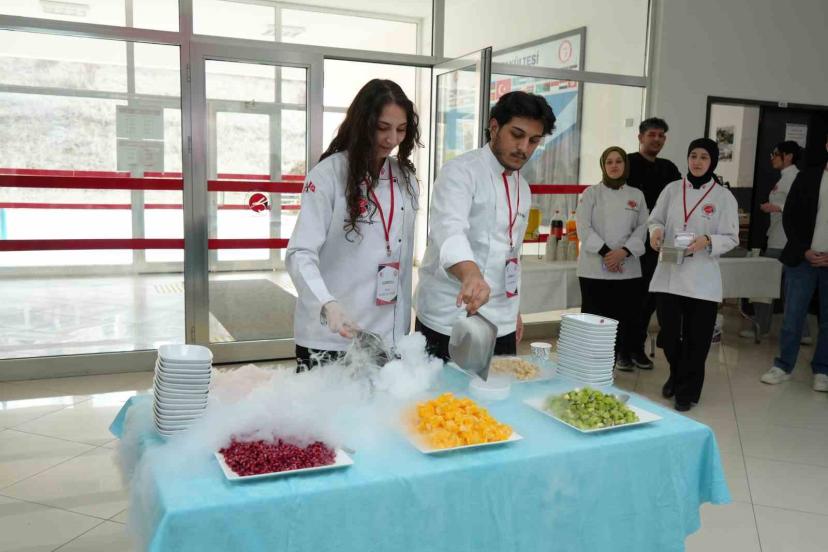 Etkinlik kapsamında öğrenciler, gastronomi alanında hazırladıkları meyvelerle "ateş meyvesi" şovu yaparak hünerlerini sergiledi.