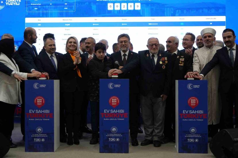Konuşmaların ardından Bakan Yumaklı ve protokol üyeleri tarafından butona basılarak kura çekimi başlatıldı.