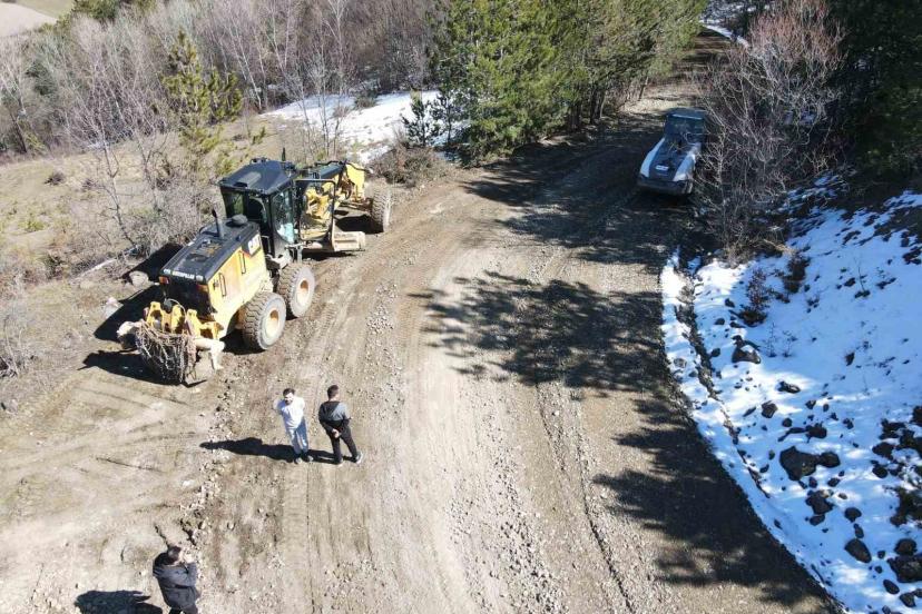 Kastamonu’da kışın hasar gören köy yollarında onarım mesaisi