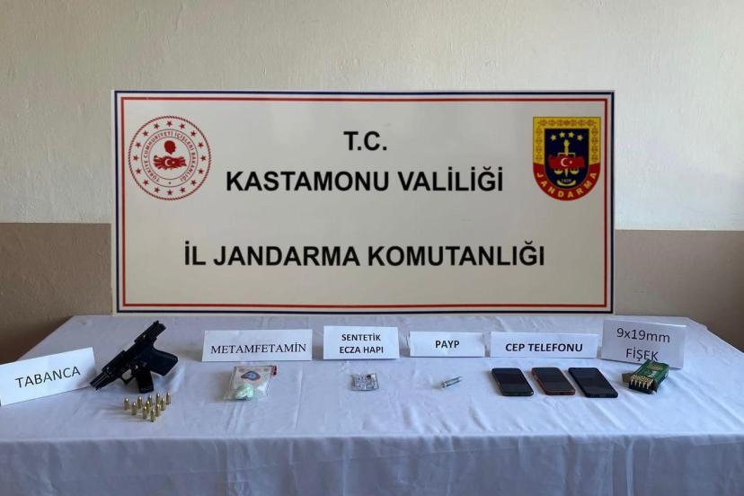 Edinilen bilgiye göre, Kastamonu İl Jandarma Komutanlığınca, narkotik suçlarla mücadele çalışmaları kapsamında teknik ve fiziki takibin ardından operasyon gerçekleştirildi. Operasyonda yapılan aramada 19 gram metamfetamin, 527 gram kannabinoid, yaklaşık 90 kullanımlık 2 adet kannabinoid emdirilmiş peçete parçası, 6 gram esrar, 3 adet ekstazi hap, 4 adet sentetik ecza hapı, 194 adet mini kilit poşet, 1 adet hassas terazi, 2 adet uyuşturucu kullanma aparatı, 1 adet ruhsatsız tabanca ve 29 adet tabanca fişeği, 5 adet cep telefonu ve SIM kartı, uyuşturucu ticaretinden elde edildiği düşünülen 200 dolar ile bin 180 avro ve 236 bin 900 TL nakit para ele geçirildi.