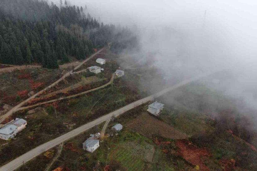 Sis nedeniyle sürücülerin zor anlar yaşadığı Yaralıgöz Dağı’nın sisle sunduğu manzara, dron ile görüntülendi.