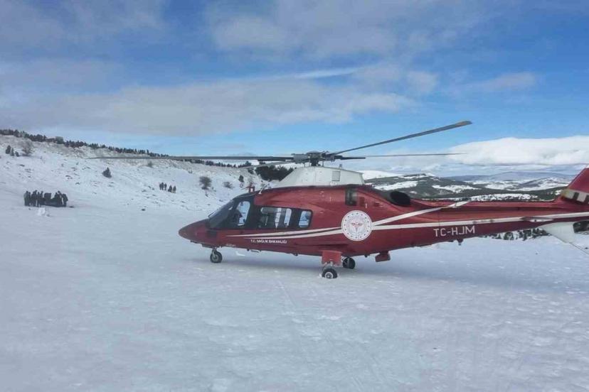 Kayakta düşerek ayağını kıran genç hava ambulansıyla hastaneye kaldırıldı