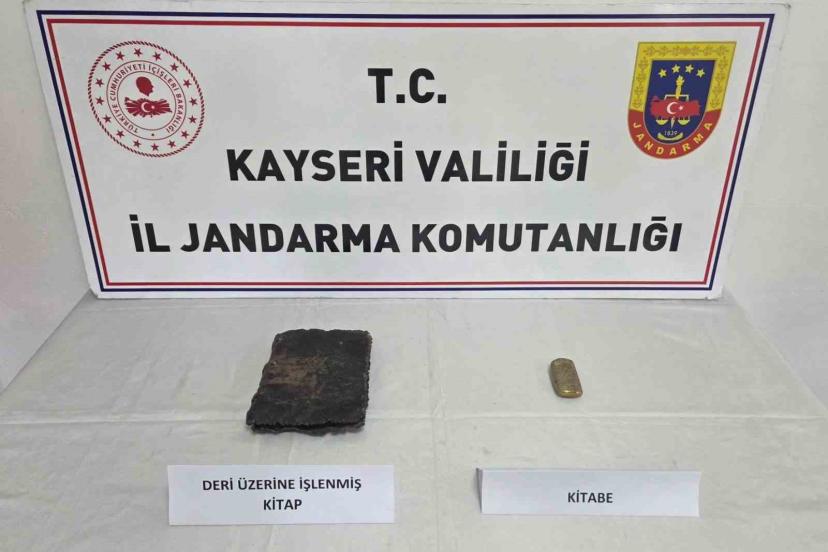 Kayseri İl Jandarma Komutanlığı ekiplerince yapılan çalışmalarda; 1 adet el yazması kitap ile 1 adet kitabe ele geçirildi.
