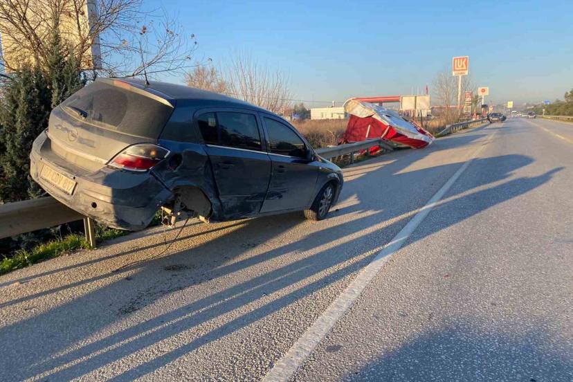 Antalya’nın Serik ilçesinde iki otomobilin karıştığı kazada, araç demir bariyerin üzerinde kaldı.