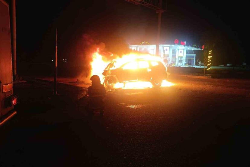 Hatay’da refüje çarparak alev alev yanan araç kullanılmaz hale geldi. Olay, Kırıkhan ilçesi Topboğazı mevkiinde meydana geldi...